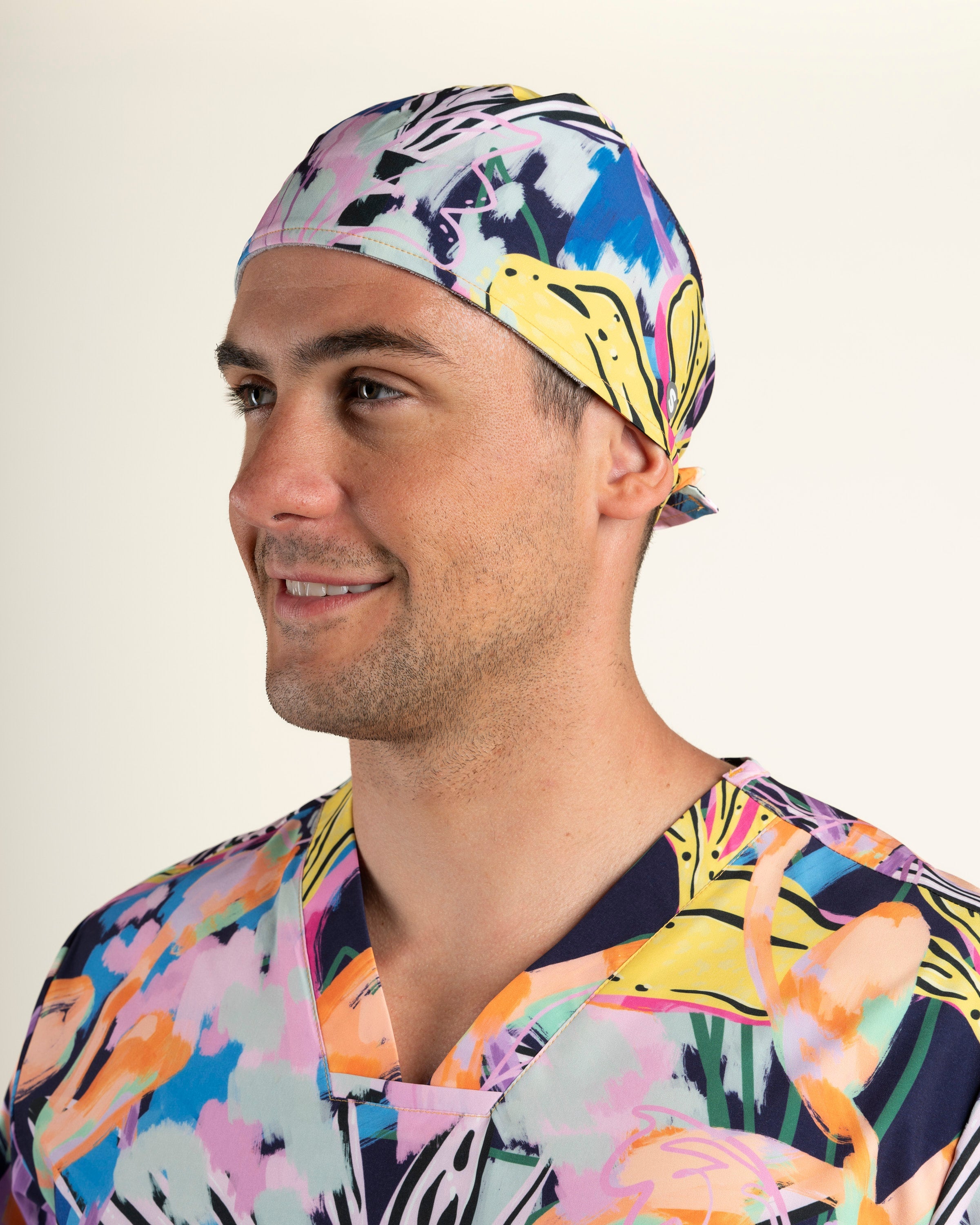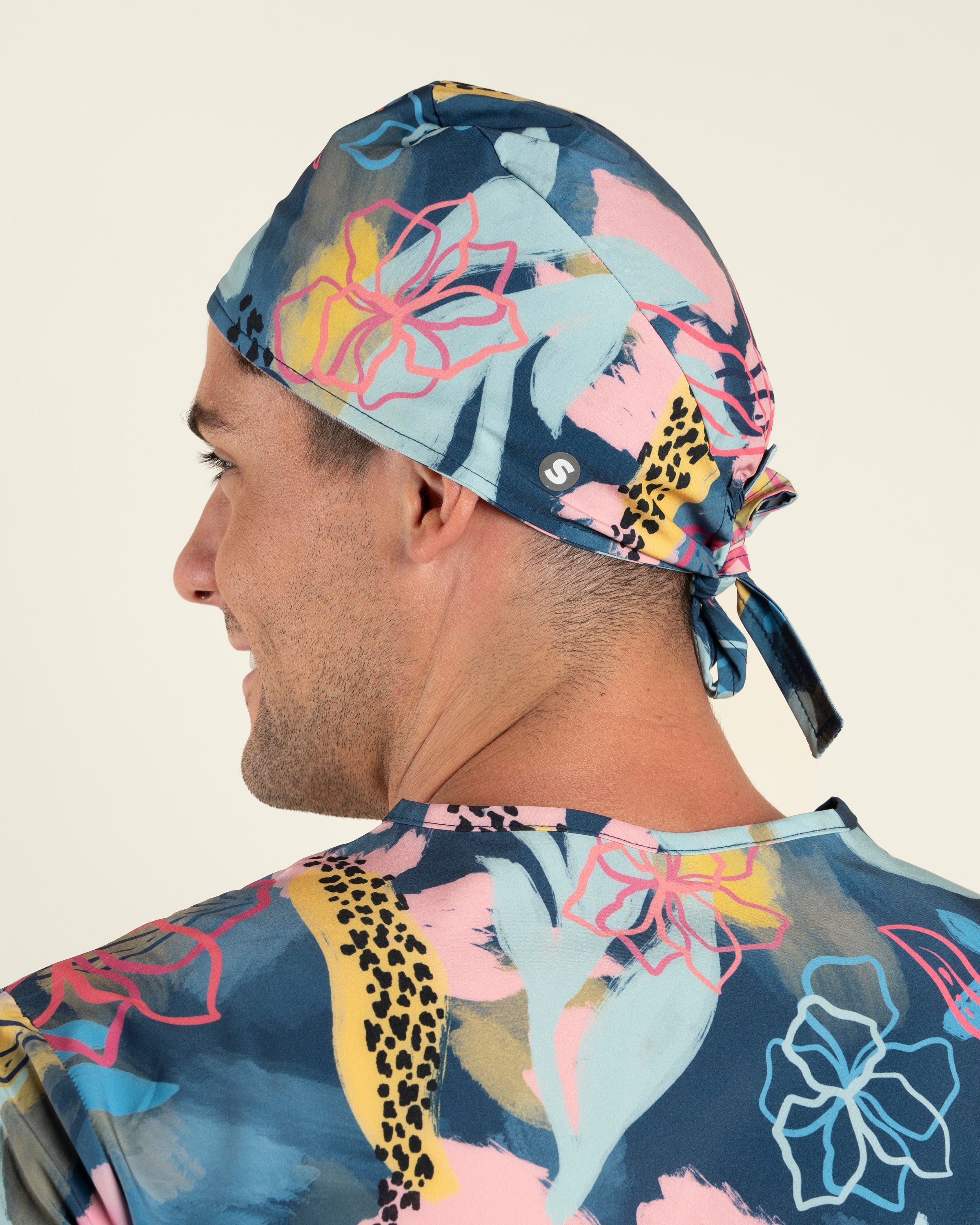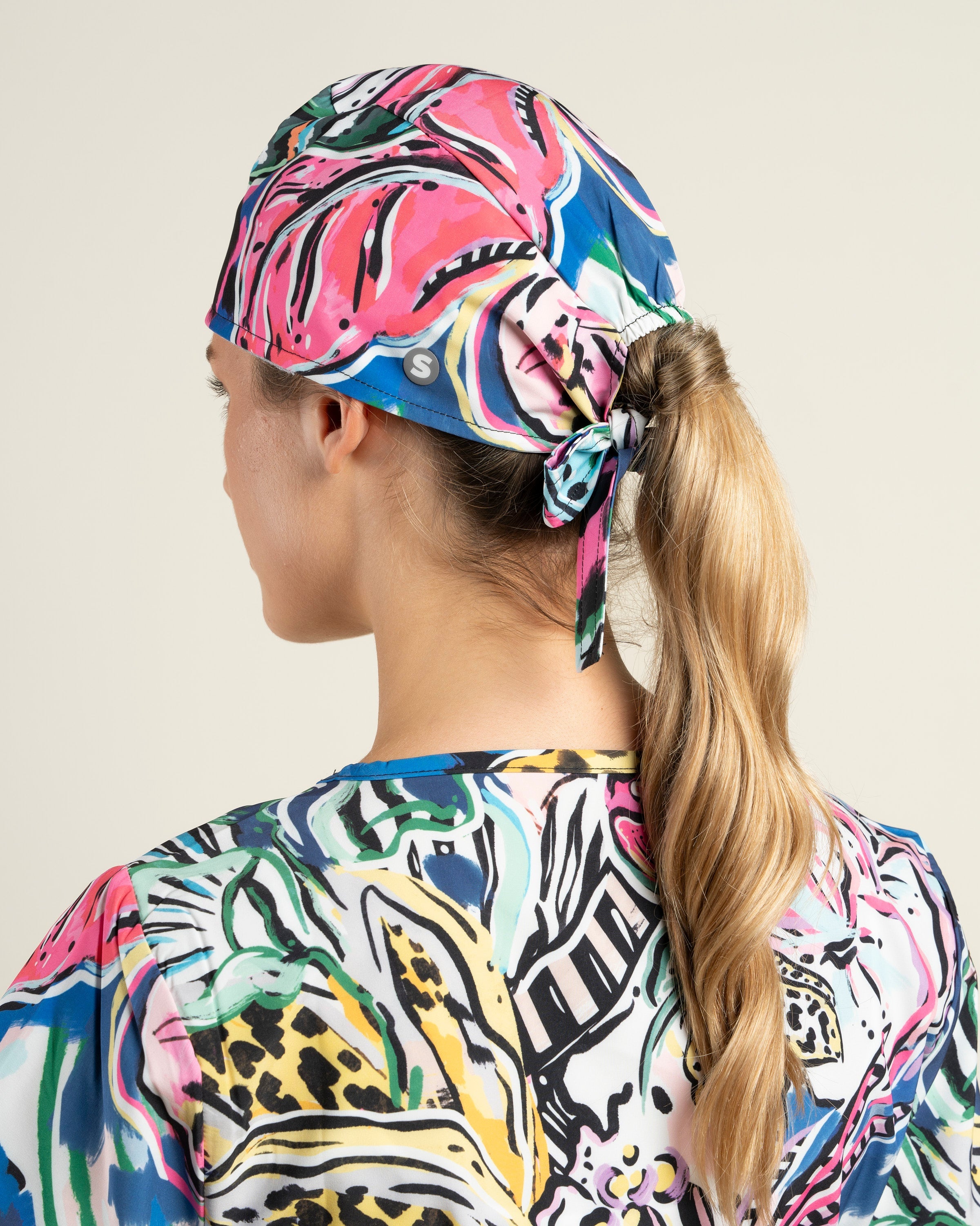 El Gorro Clínico Safari, diseñado junto a Trini Guzmán, completa la colección con un diseño anatómico y ajustable que mezcla arte y funcionalidad. Confeccionado en tela D-PolyTech®, ofrece elasticidad, frescura y comodidad durante toda la jornada, mientras sus estampados únicos celebran la fuerza y color del mundo natural.