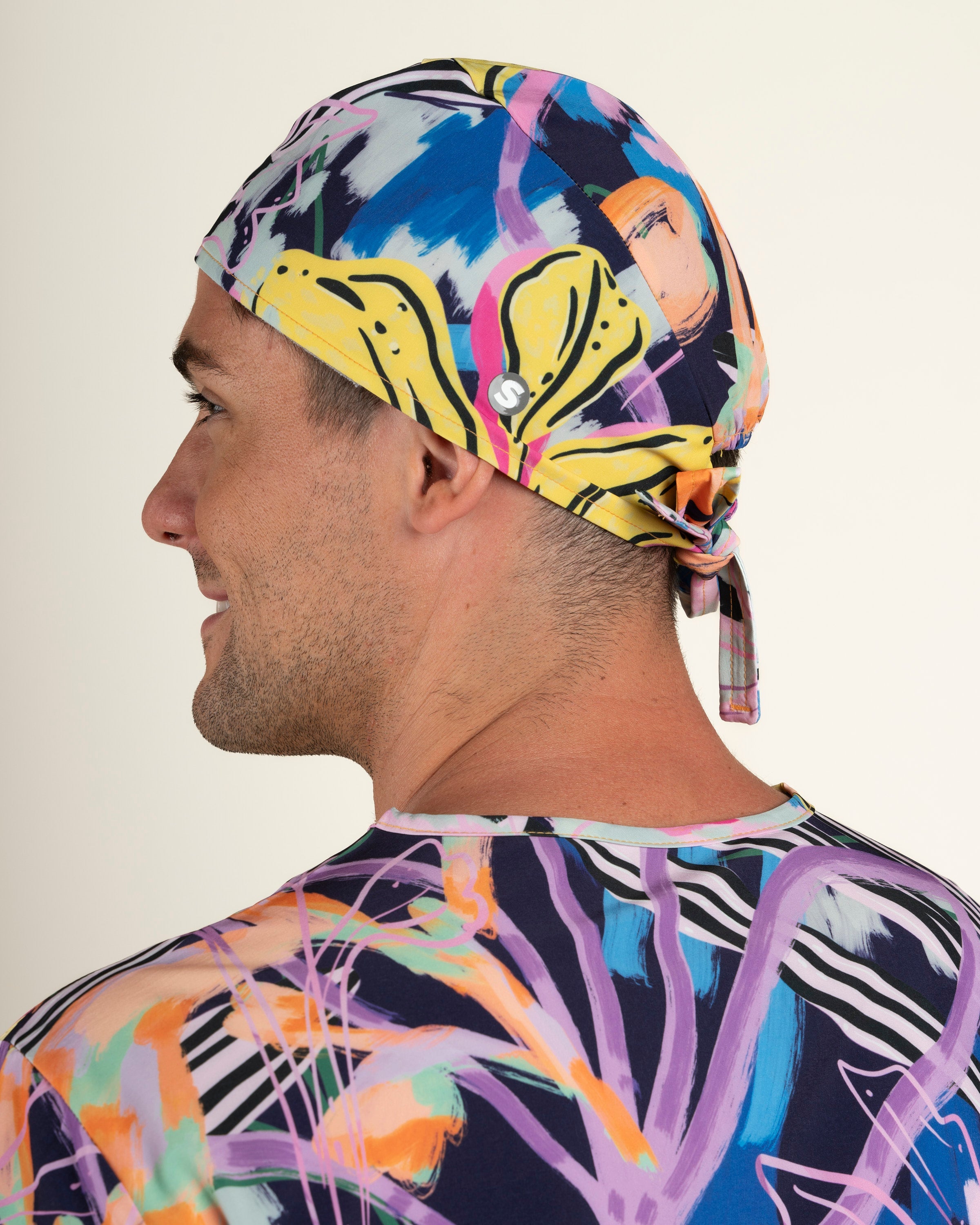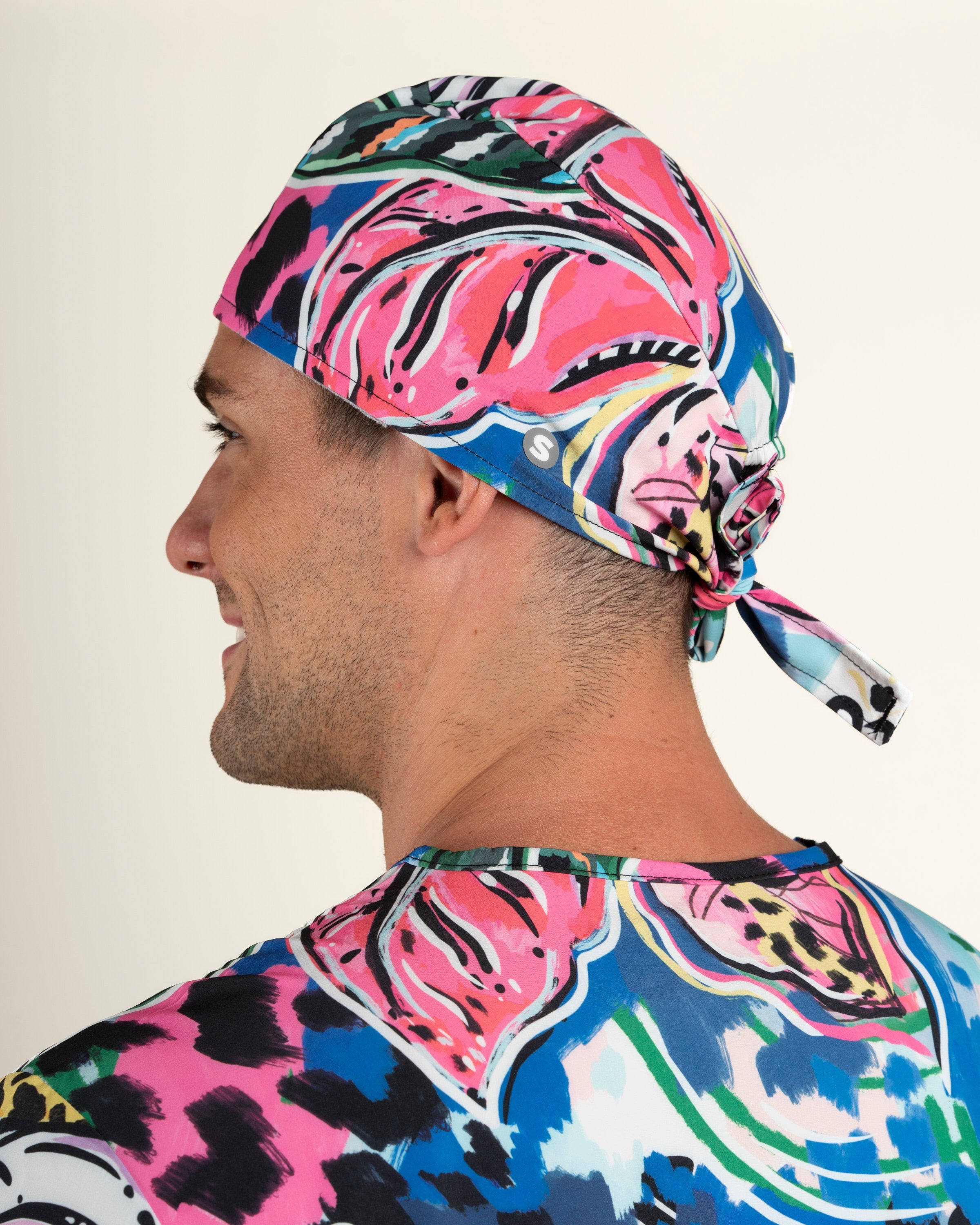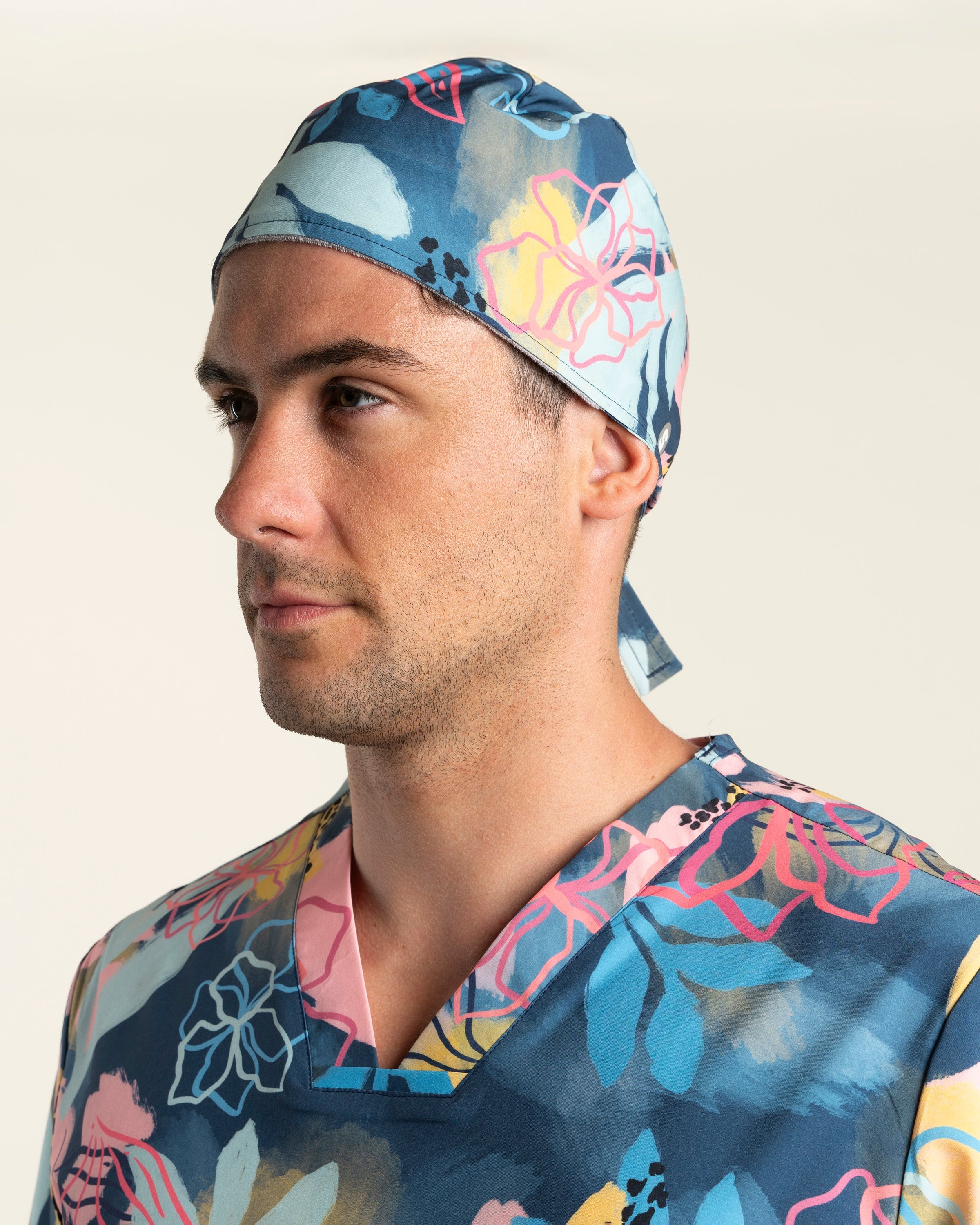El Gorro Clínico Safari, diseñado junto a Trini Guzmán, completa la colección con un diseño anatómico y ajustable que mezcla arte y funcionalidad. Confeccionado en tela D-PolyTech®, ofrece elasticidad, frescura y comodidad durante toda la jornada, mientras sus estampados únicos celebran la fuerza y color del mundo natural.