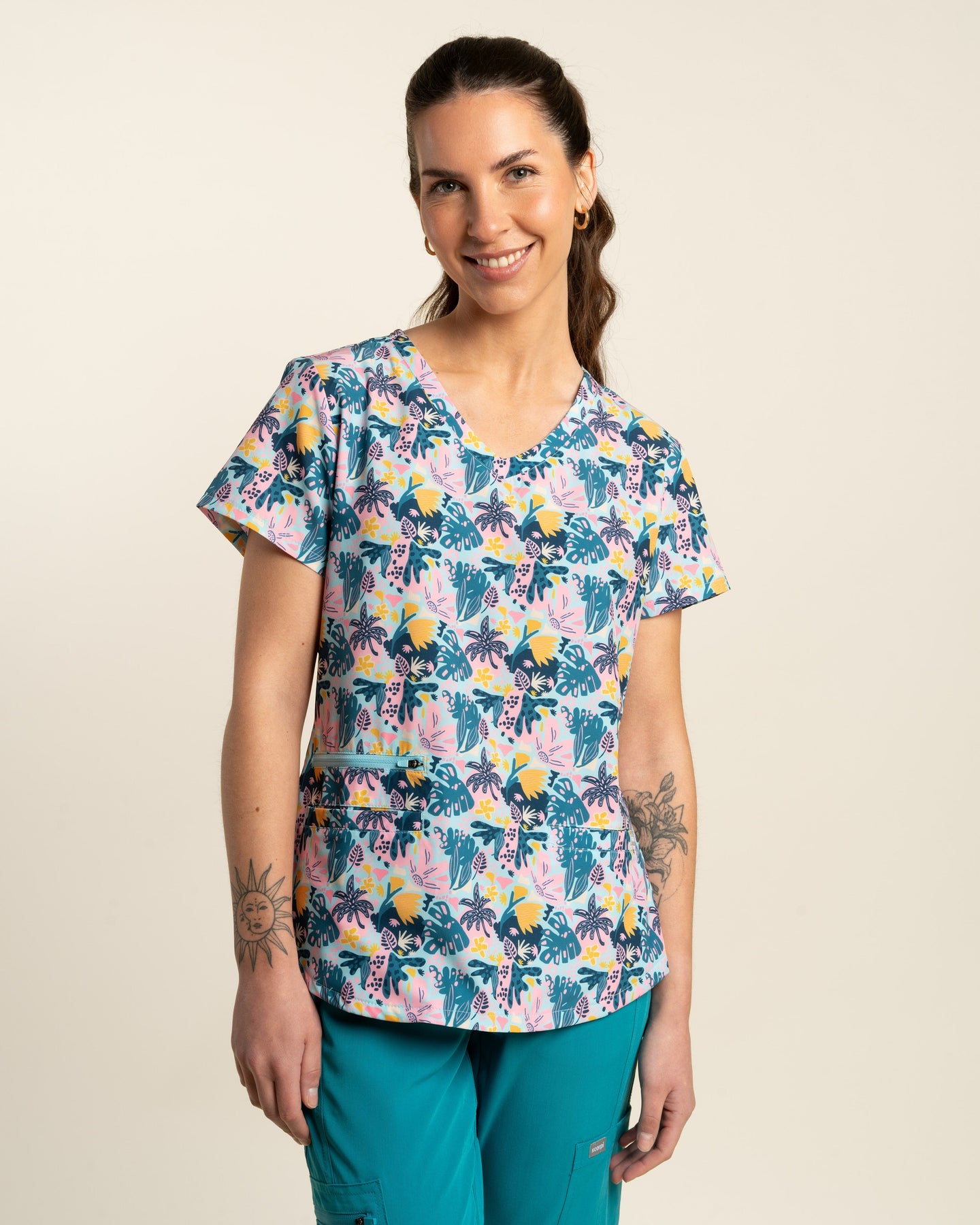 El Top Mujer Tropical destaca por su diseño nacional desarrollado junto a Dani Blanq, con estampados inspirados en flores tropicales que celebran la naturaleza y la energía femenina. Con tela D-PolyTech®, ofrece suavidad, elasticidad y un calce perfecto para acompañarte día tras día.