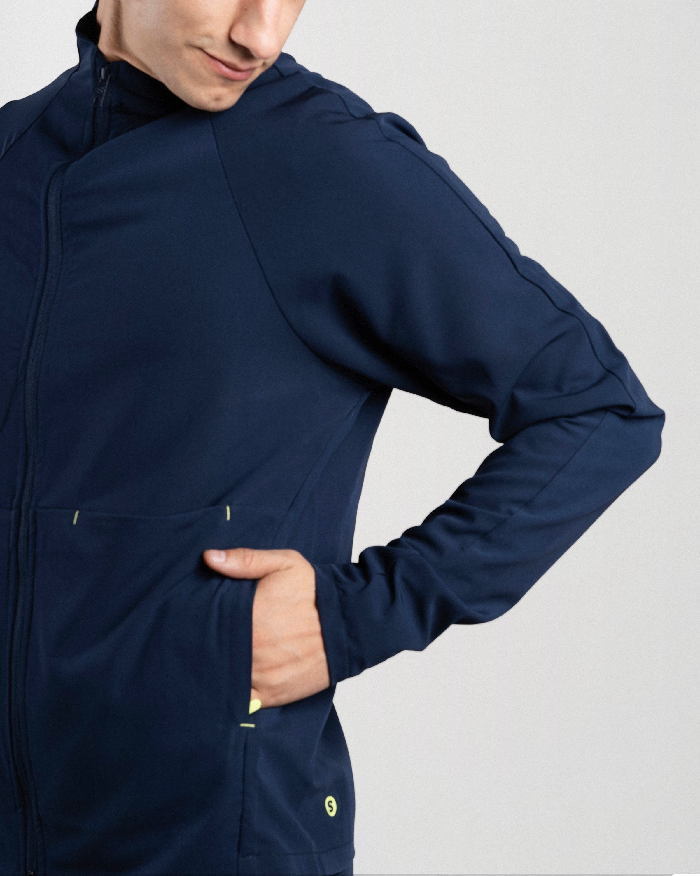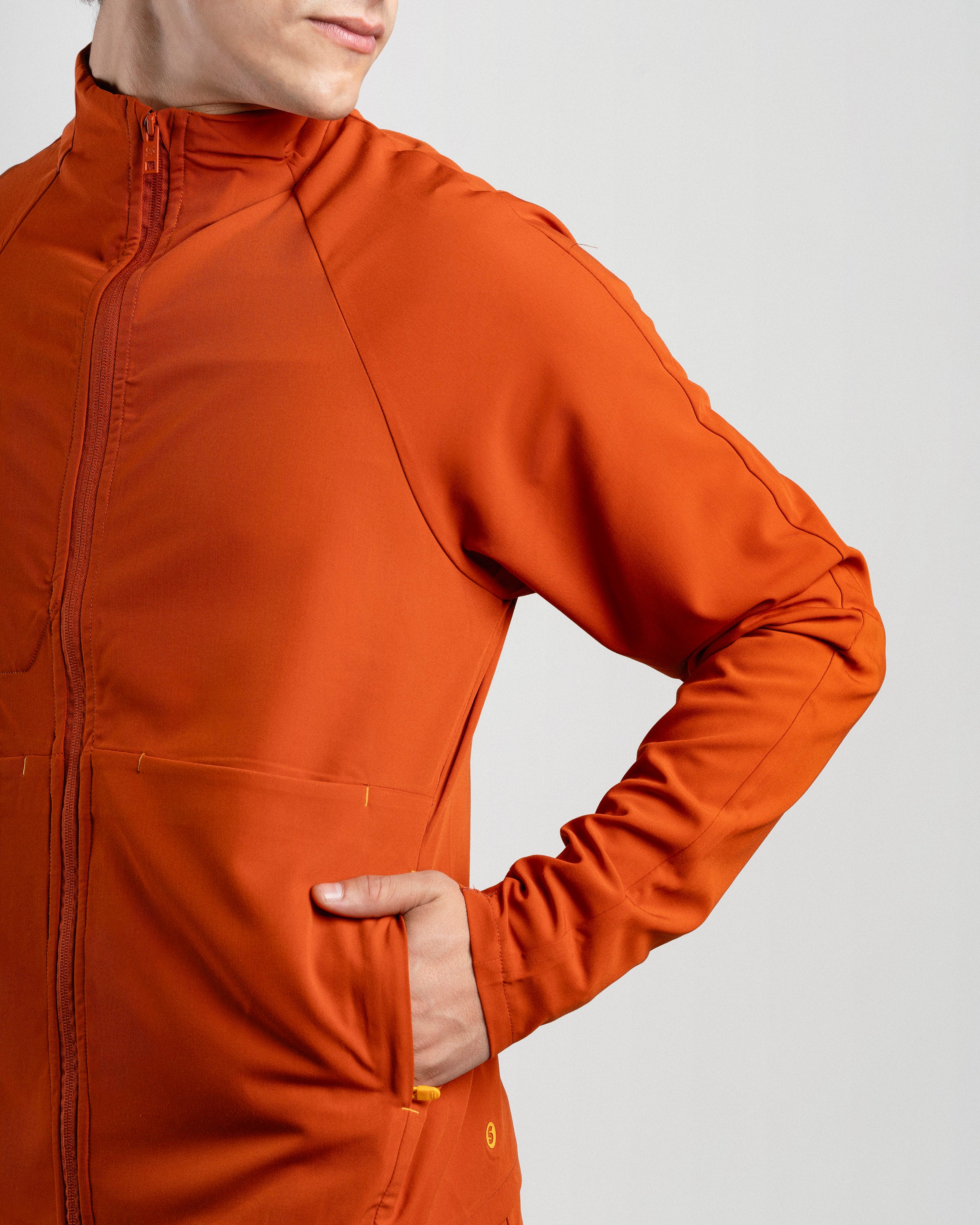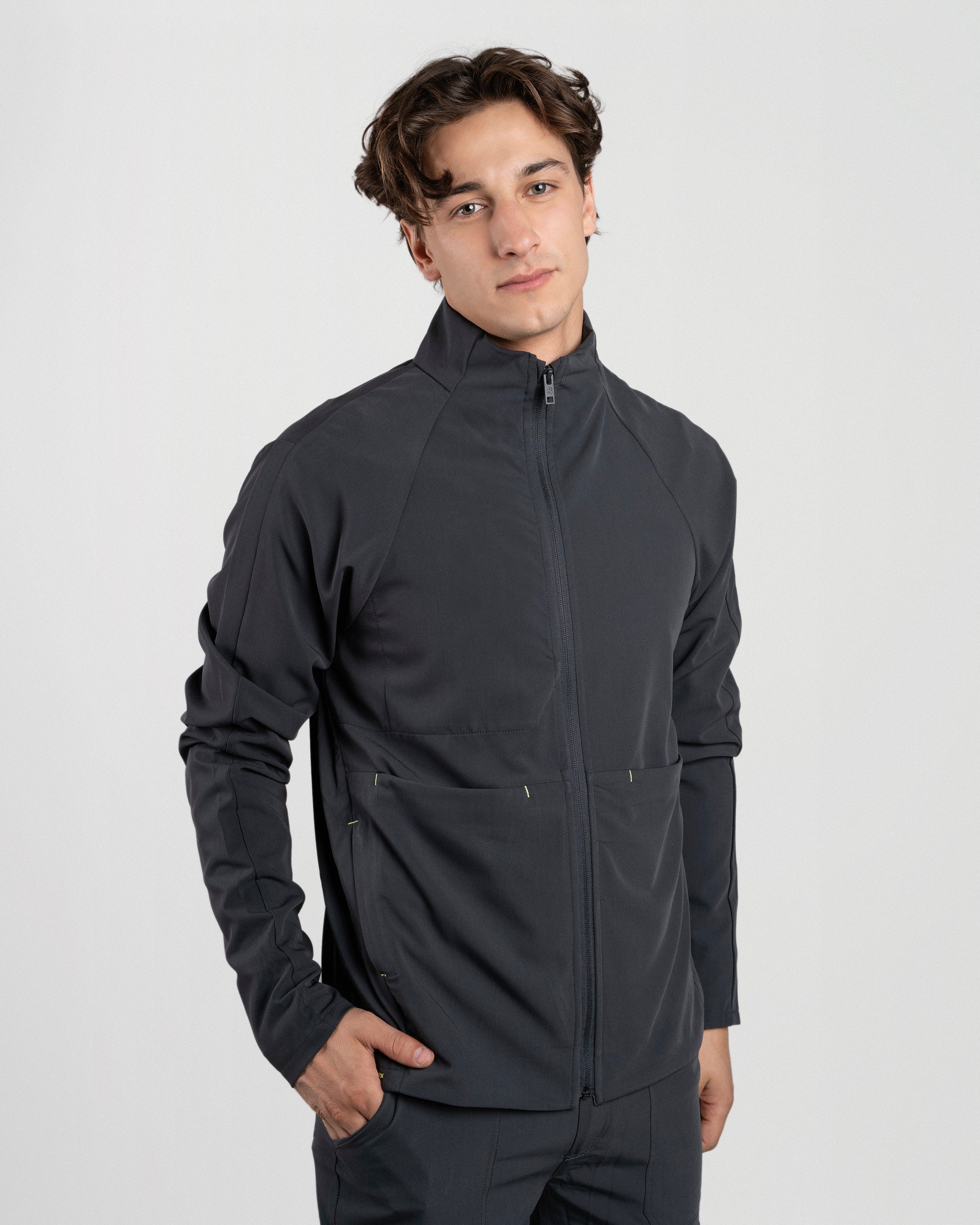 El Mid Jacket Hombre es cómoda, funcional y se adapta naturalmente a tu figura gracias a su calce slim. Incluye orificio para el pulgar para mayor ajuste y bolsillos laterales con cierre para llevar lo esencial siempre contigo. Ideal para antes, durante y después del trabajo.