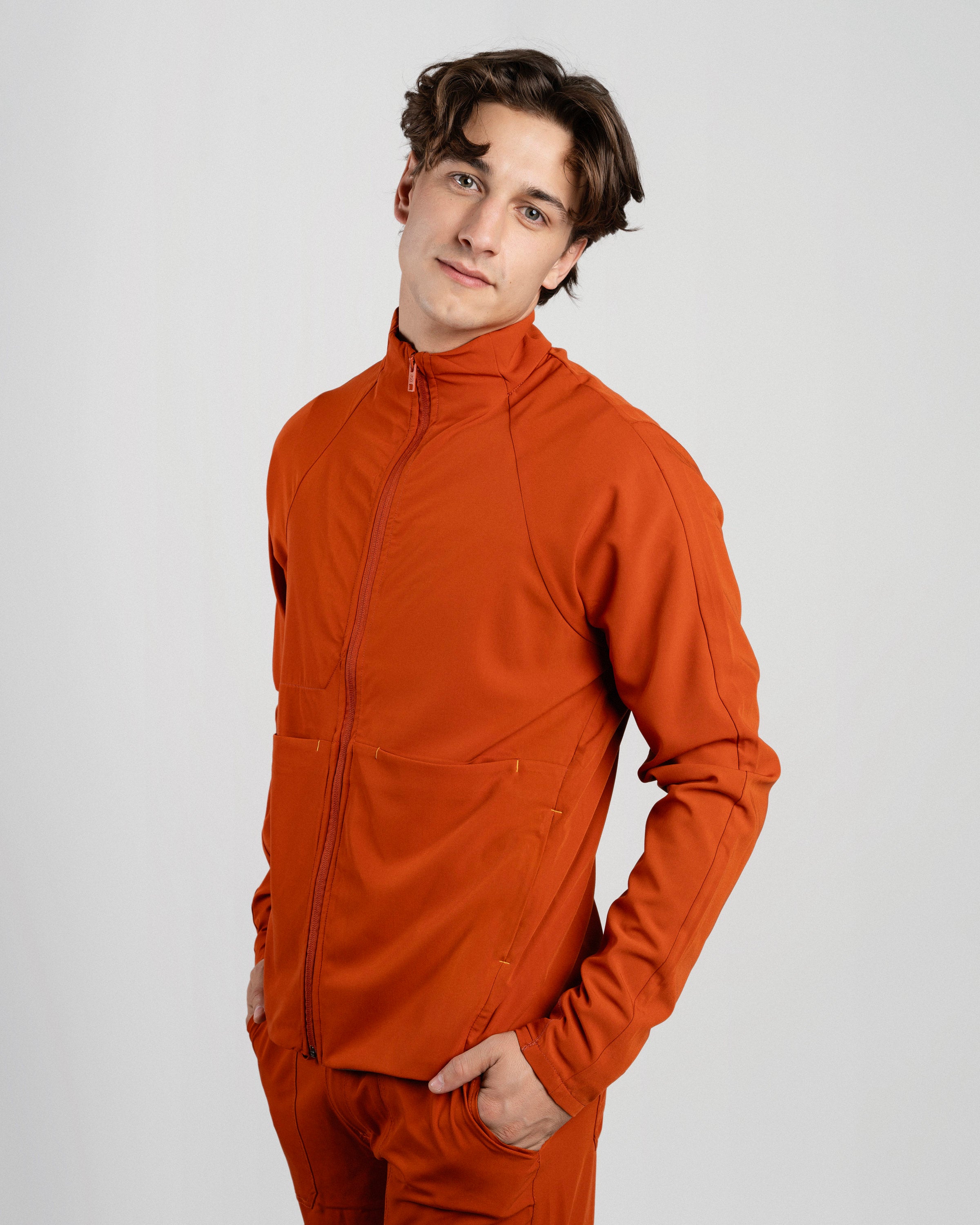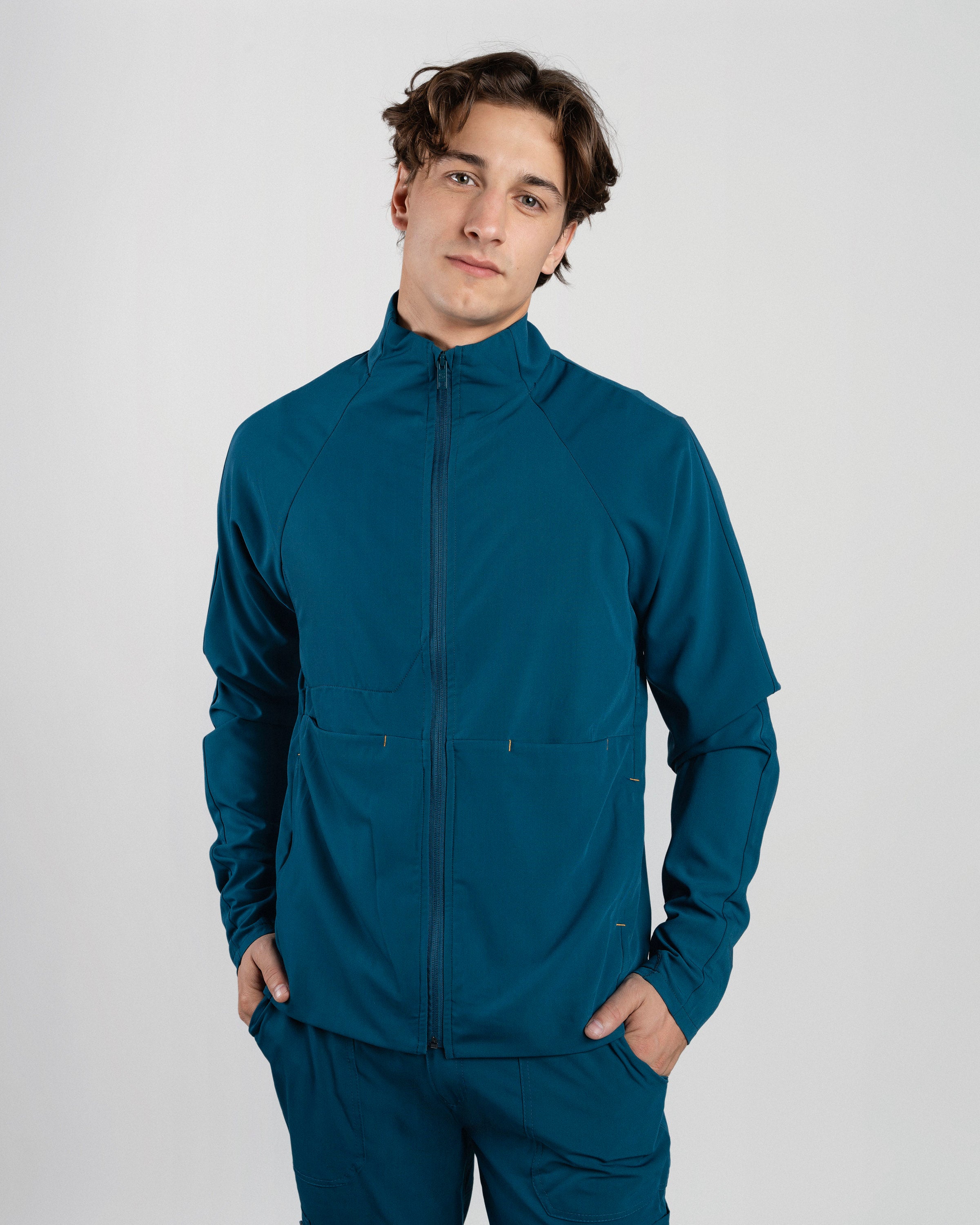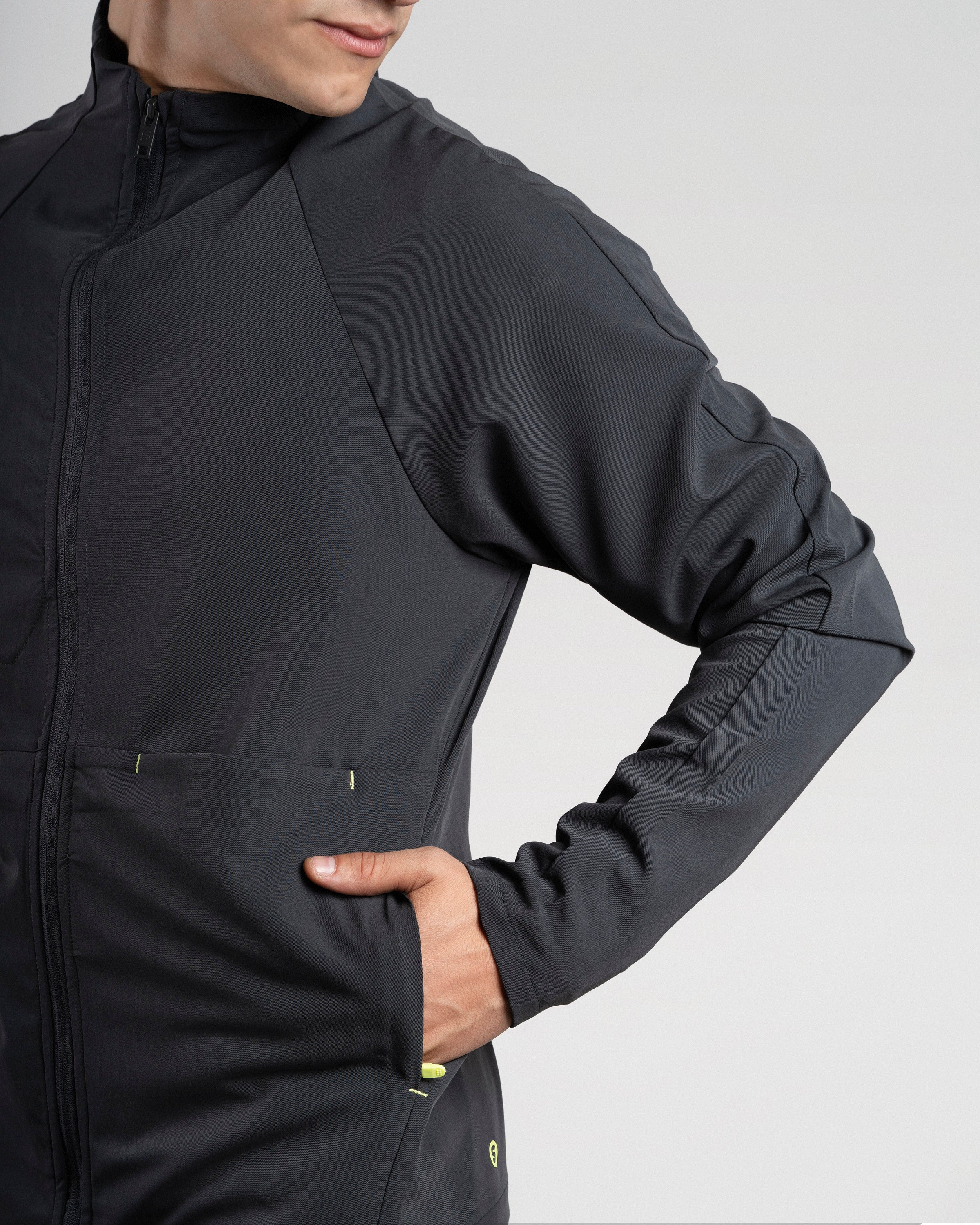 El Mid Jacket Hombre es cómoda, funcional y se adapta naturalmente a tu figura gracias a su calce slim. Incluye orificio para el pulgar para mayor ajuste y bolsillos laterales con cierre para llevar lo esencial siempre contigo. Ideal para antes, durante y después del trabajo.