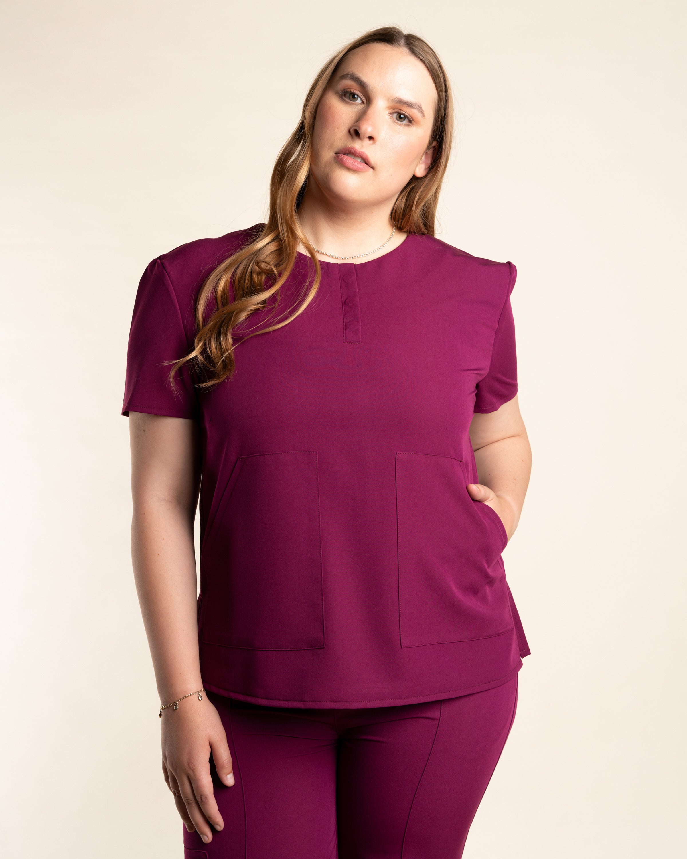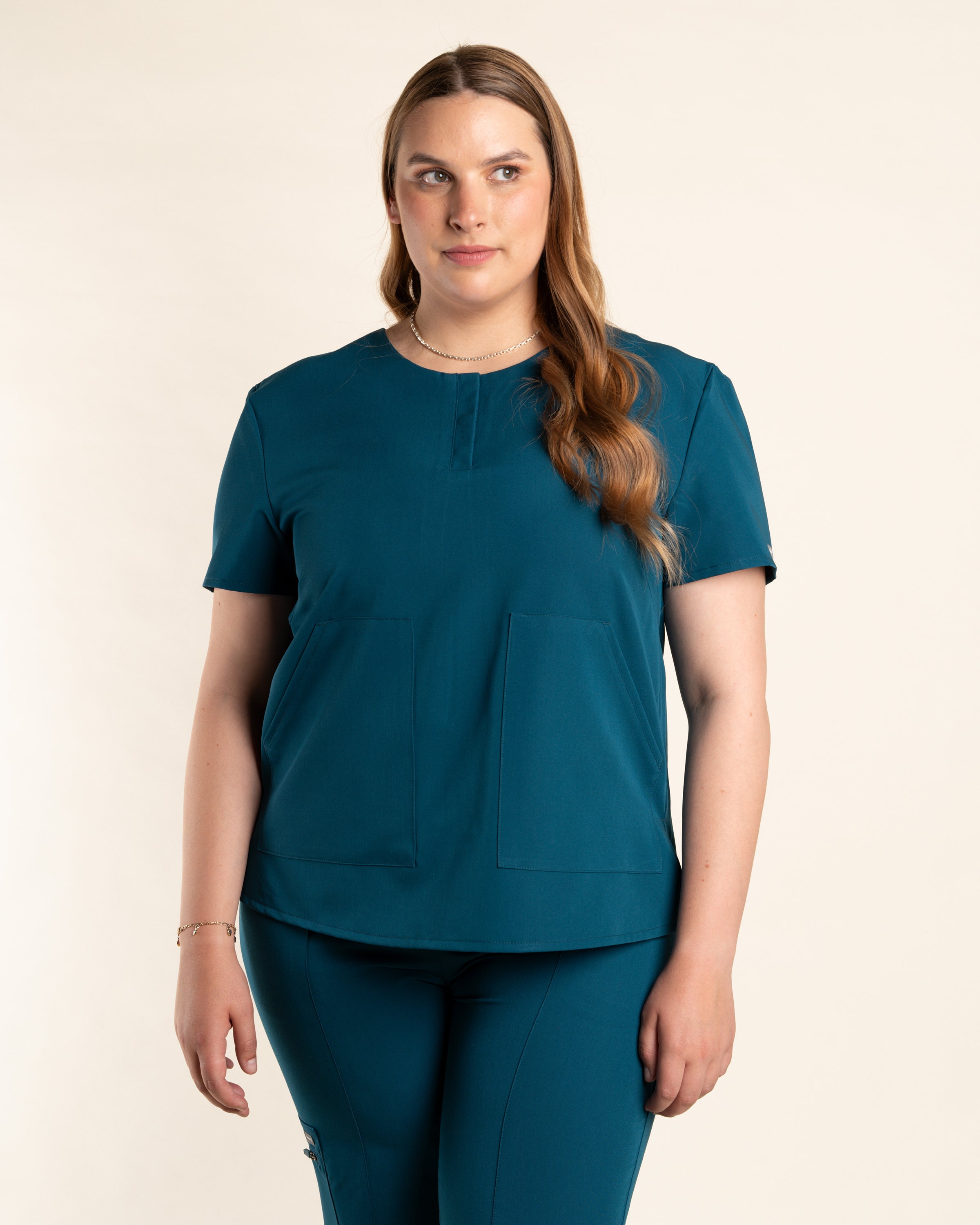 El Top Mujer Curve nace para adaptarse a cuerpos con más forma, ofreciendo un calce cómodo, fluido y favorecedor. Su diseño combina tecnología textil avanzada con una silueta moderna que realza la confianza y el bienestar en cada jornada.